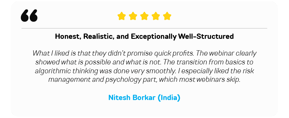 This is a beginner to pro practical training taught by active traders who have spent over 17 years navigating real market conditions. You learn only what matters, backed by real examples, live charts, risk management frameworks, and modern AI tools used by today’s top traders.